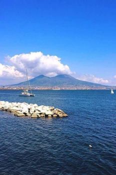 Tra il Vesuvio che imponente si erge abbracciando il golfo.