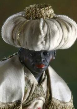 | «La foto che vedete è di una statuetta di Baldassare Re magio. Presepe Cucciniello del 700. sito in S. Martino Napoli. Pezzi unici al mondo, di bellezza straordinaria, i vestiti dei pastori provenivano da S Leucio, antica seteria Borbona.» |